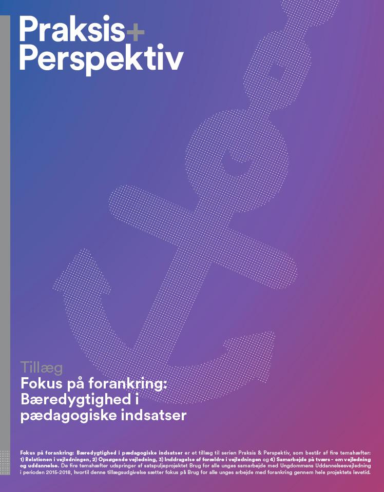 Fokus på forankring: Bæredygtighed i pædagogiske indsatser er et tillæg til serien Praksis & Perspektiv. Praksis & Perspektiv består af fire temahæfter;