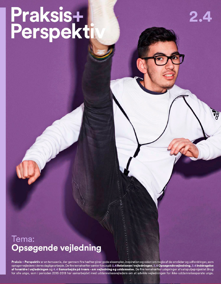Praksis + Perspektiv: Opsøgende vejledning er et temahæftet, der giver inspiration, viden og lærerige eksempler på, hvordan den opsøgende vejledning udfolder sig der, hvor de unge er. Det er et anvendelsesorienteret idékatalog, der med sit indhold forhåbentlig giver anledning til at arbejde med opsøgende vejledningsindsatser.