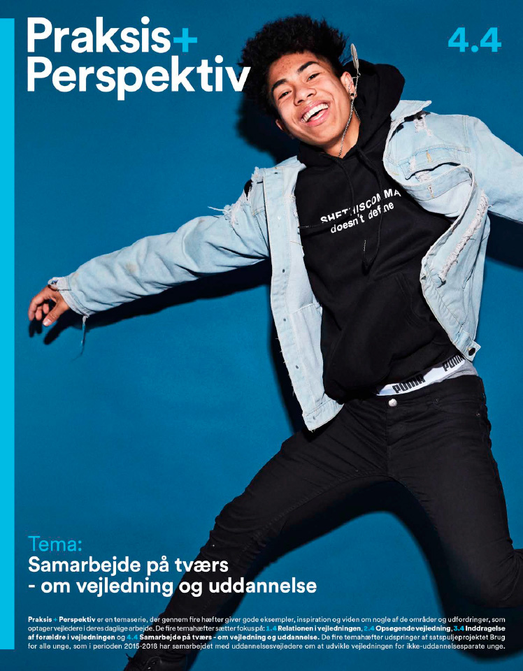 Praksis + Perspektiv: Samarbejde på tværs - om vejledning og uddannelse er et af fire temaer i serien Praksis & Perspektiv. Praksis & Perspektiv består derudover af tre temahæfter og et tillæg;