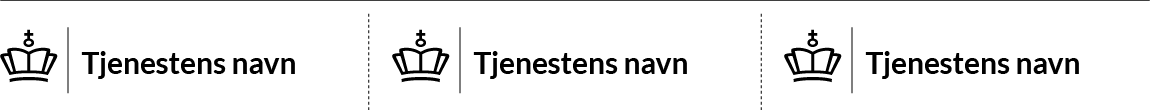 Header 2 indeholder kronen efterfulgt af lodret streg og tjenestens navn skrevet med almindelige bogstaver.