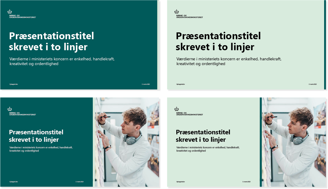 Når du bruger skabelonerne, er du med til at sikre, at Børne- og Undervisningsministeriet fremstår som en ensartet, genkendelig og professionel afsender.