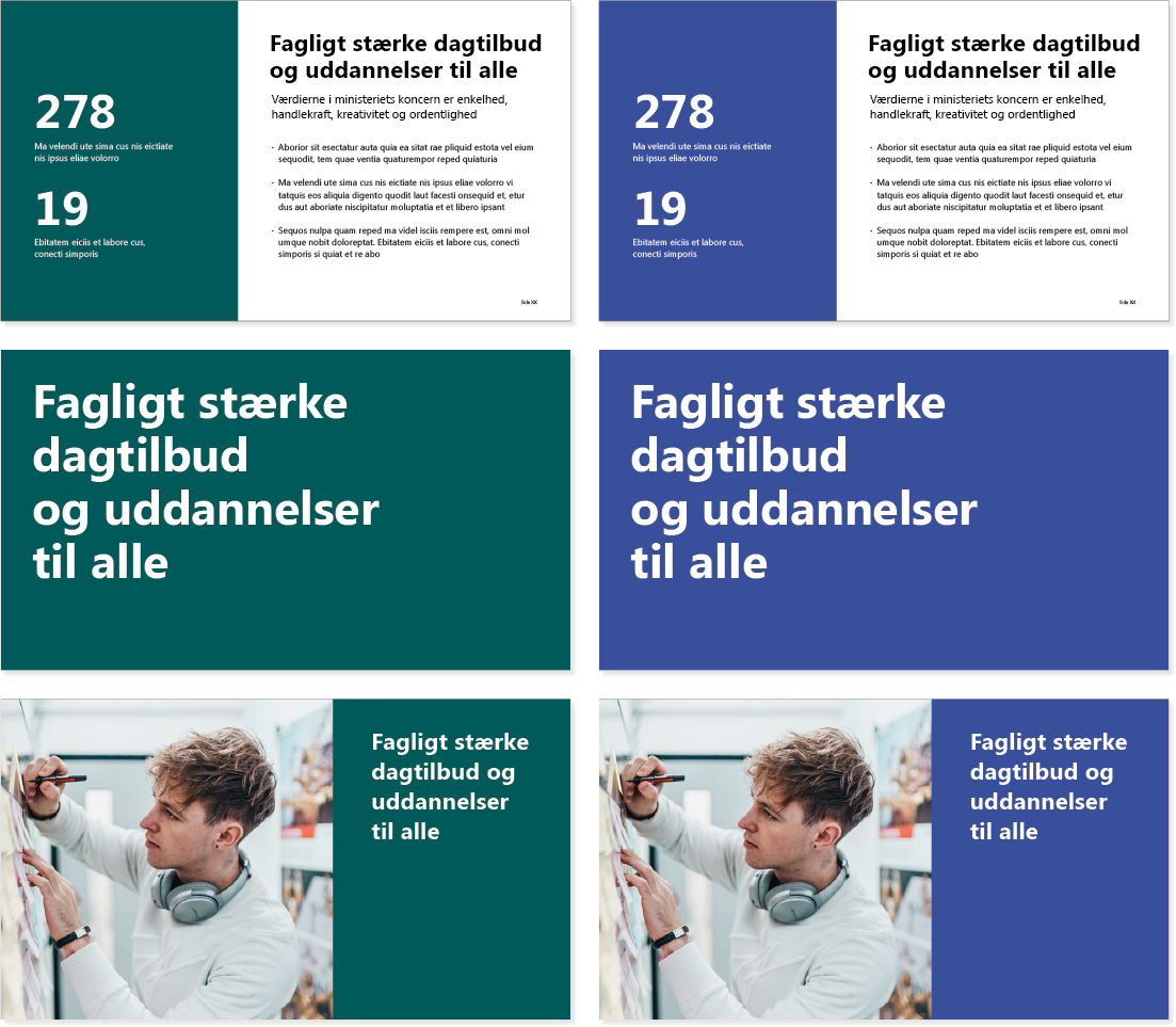 Se eksempler på skabelonerne med Styrelsen for It og Lærings markørfarve.
