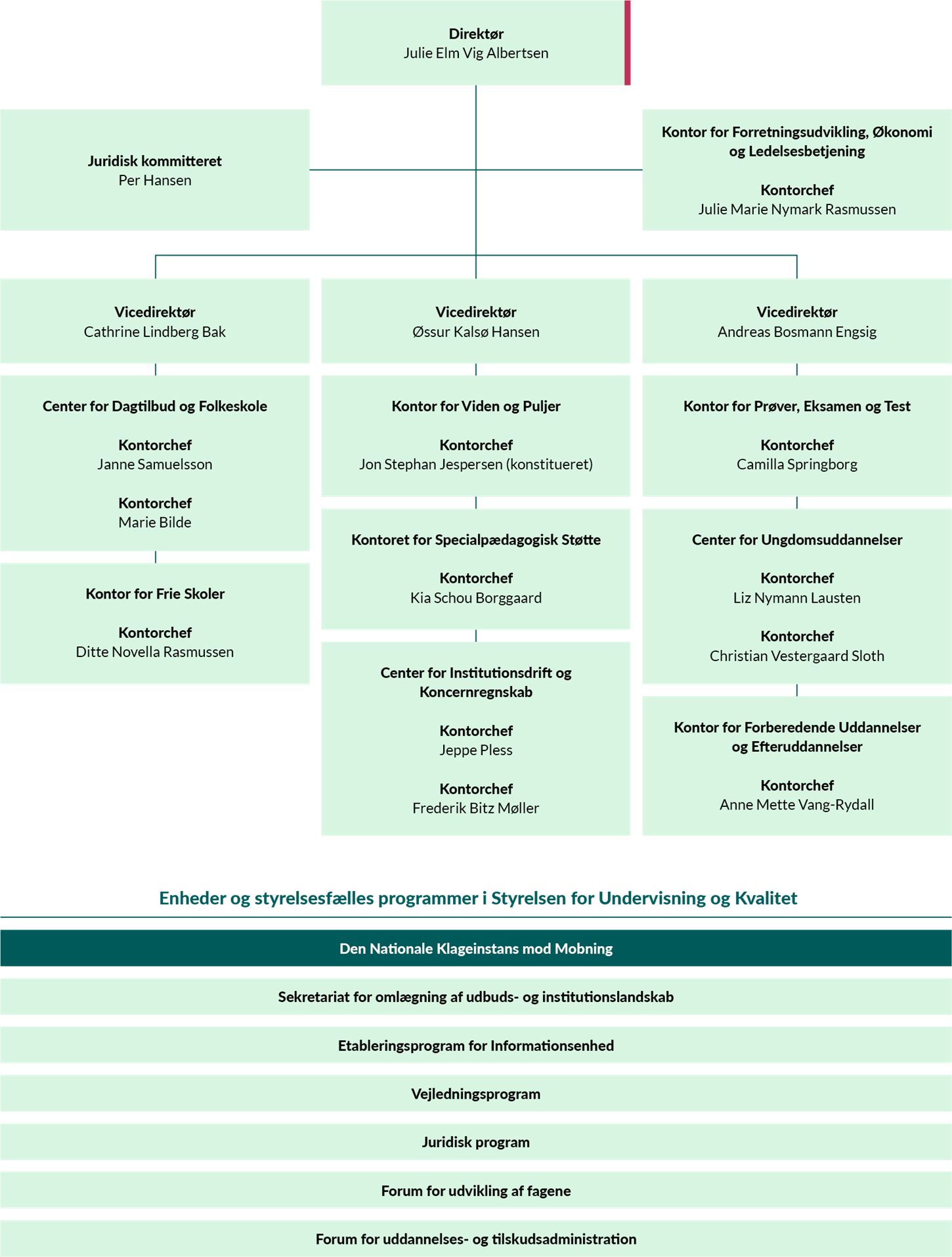 Beskrivelse af organisationsdiagrammet for Styrelsen for Undervisning og Kvalitet